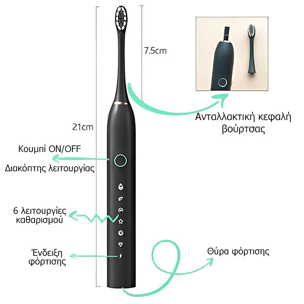 🦷 Η δυνατότητα αγοράς ανταλλακτικών κεφαλών βουρτσών για μεγαλύτερης διάρκειας χρήση και πλήρη υγιεινή!