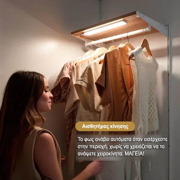 Κάντε το ντύσιμο πιο εύκολο κολλώντας αυτό το φως μέσα στην ντουλάπα σας. Φωτίζεται αυτόματα όταν ανοίγετε την πόρτα, βοηθώντας σας να βρείτε τα ρούχα σας χωρίς να ψάχνετε στο σκοτάδι.
