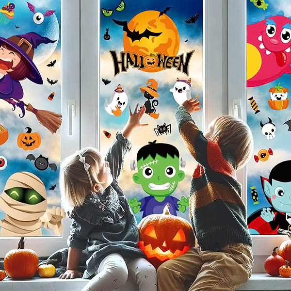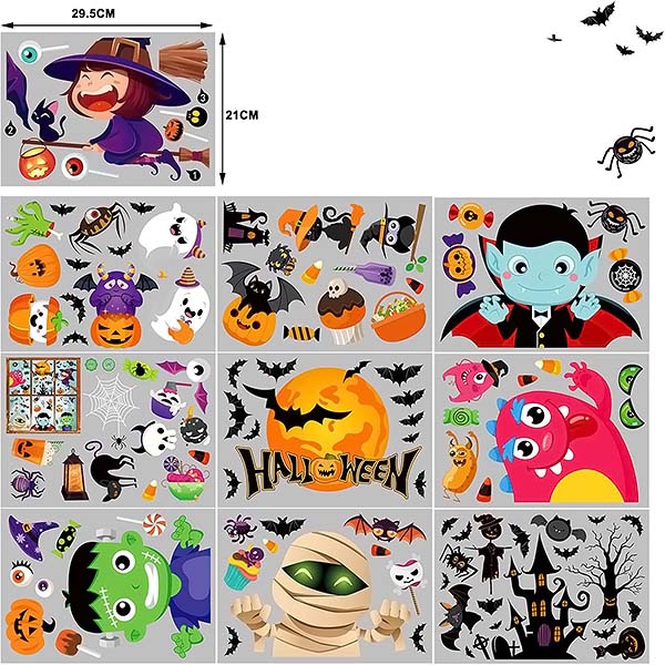 Απόκριες αυτοκόλλητα παραθύρων (10 φύλλα με αυτοκόλλητα σε σετ) | SPOOKCLINGS