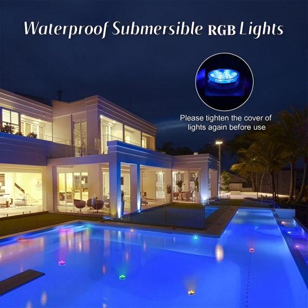 Χωρίς βύσματα, χωρίς σπινθήρες! Βελτιώστε με ευκολία την ατμόσφαιρα κάθε ενυδρείου, δοχείου νερού ή κουβά με πάγο. Αυτά τα μίνι υδάτινα φώτα με τα ζωντανά χρώματα ομορφαίνουν κομψά την πισίνα, το ενυδρείο, το βάζο ή οποιοδήποτε ντεκόρ σας. Είτε διοργανώνετε ένα πάρτι είτε απολαμβάνετε ένα ήσυχο βράδυ, αυτά τα ευέλικτα φώτα RGB θα αναβαθμίσουν αμέσως το περιβάλλον σας.