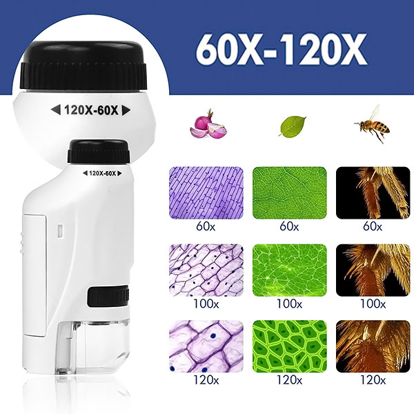 Εξοπλισμένο με φωτισμό LED και μεγέθυνση 60x-120x, τα παιδιά μπορούν να ανακαλύψουν τον συναρπαστικό μικροσκοπικό κόσμο μέρα ή νύχτα. Οι καθαρές, ευκρινείς εικόνες τα κρατούν απασχολημένα και πρόθυμα να μάθουν περισσότερα.