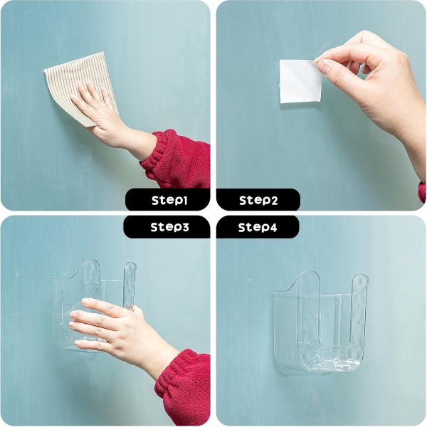 Ξεκολλήστε την αυτοκόλλητη ταινία, πιέστε στον τοίχο, τελειώσατε – χωρίς τρύπημα, χωρίς βίδες, χωρίς εργαλεία. Κρατάει γερά σε πλακάκια, βαμμένους τοίχους και πόρτες ντουλαπιών.